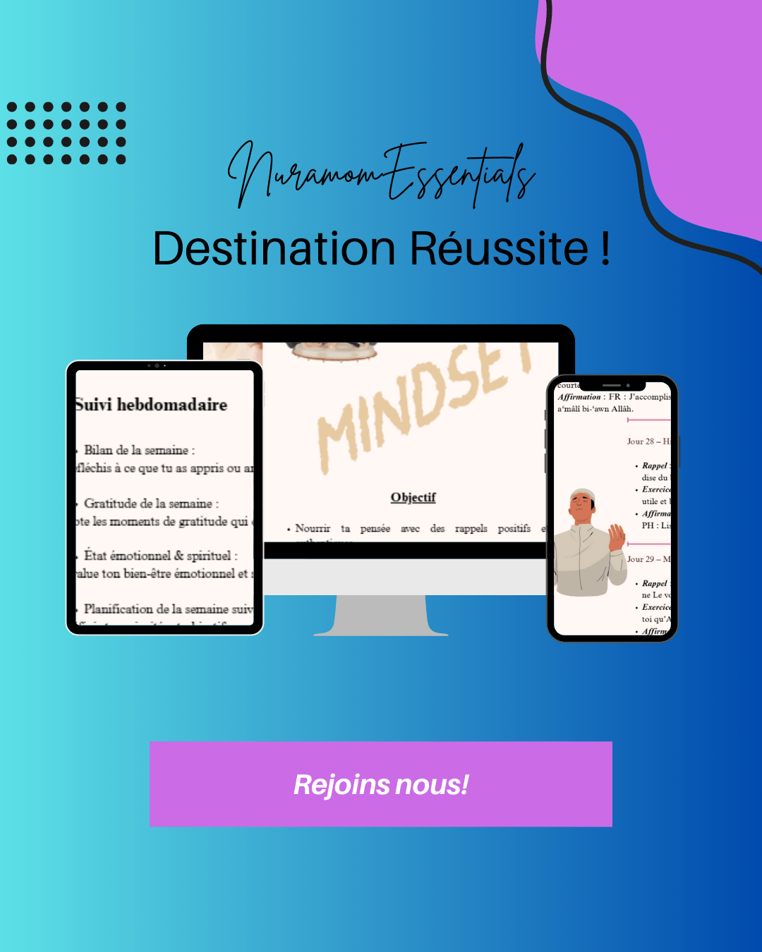 Bénéficier d’une routine spirituelle claire et d’un quotidien organisé, et enfin pouvoir ressentir la satisfaction profonde en réalisant tous tes objectifs dunya et dîn.